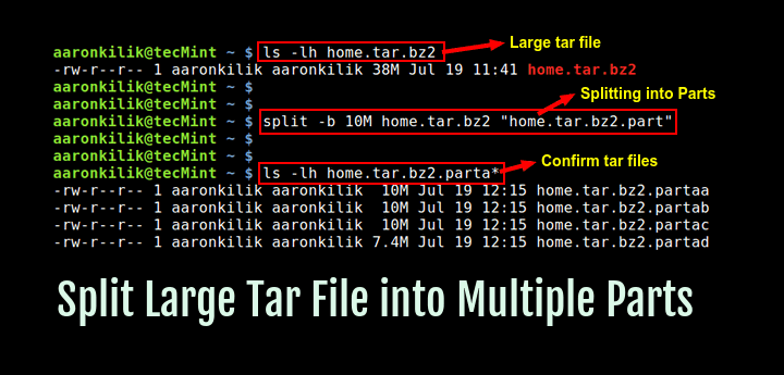 Você está preocupado em transferir ou fazer upload de arquivos grandes em uma rede e não se preocupe mais, porque você pode mover seus arquivos em bits para lidar com velocidades lentas da rede dividindo-os em blocos de um determinado tamanho. Antes de avançarmos, tomemos nota de como esses utilitários podem ser usados, a sintaxe geral de um comando tar e split é a seguinte: